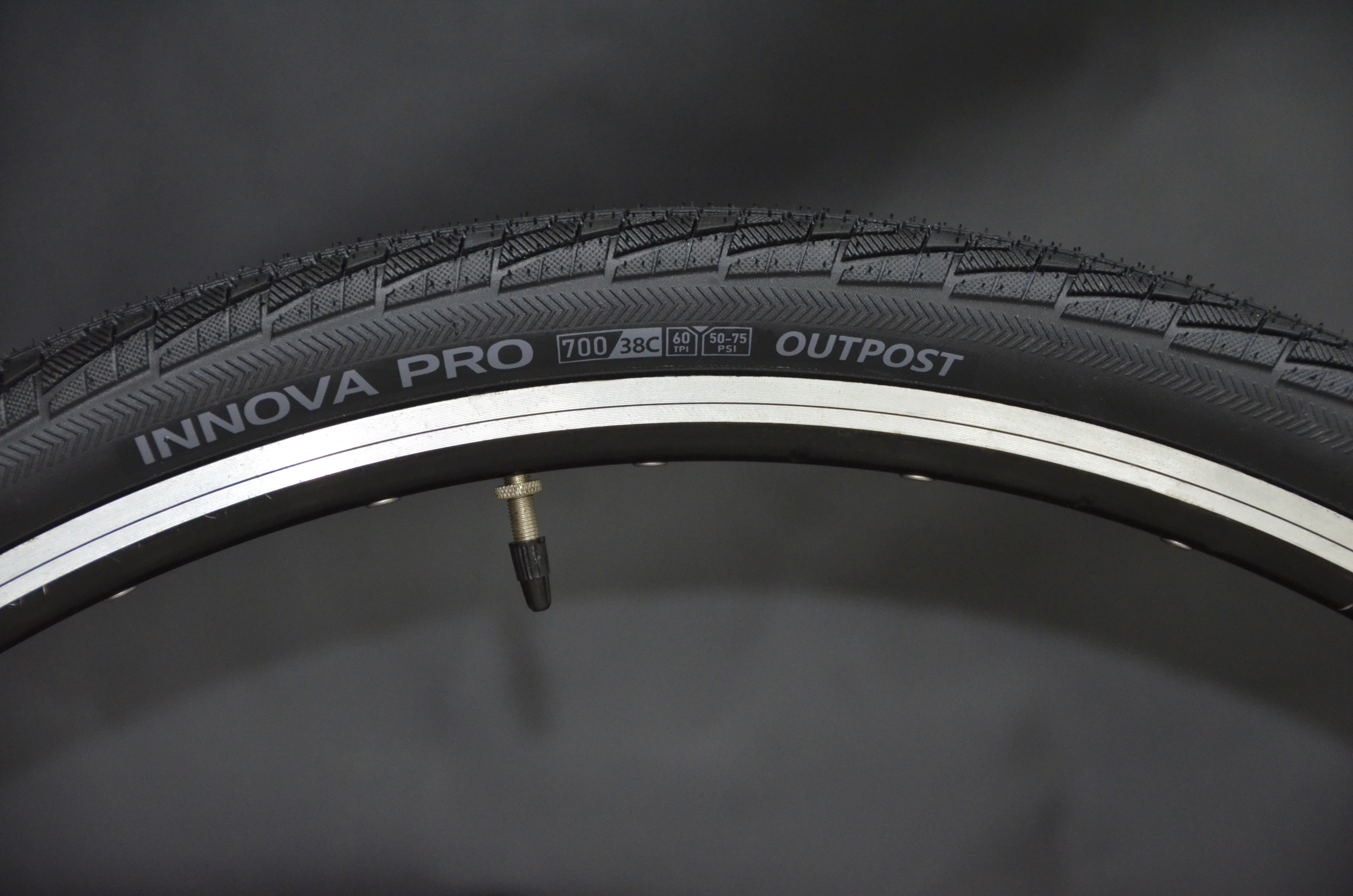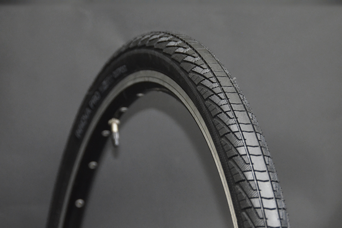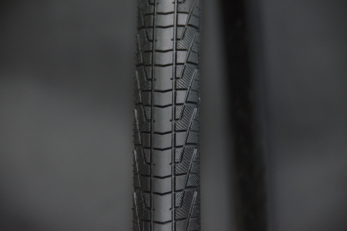 The continuous straight tread pattern in the center allows for a lower rolling resistance for charging down the straights, while a bi-textured surface designs on the sides treads are used to improve the handling in cornering. Built for the mixed pavement and light gravel.