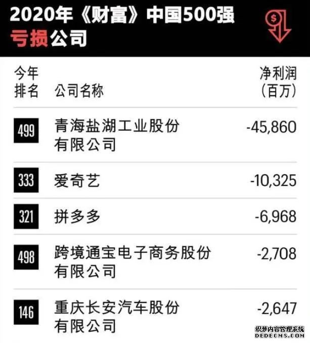 ???恩訊輿情處置:就在不久前,知名商業(yè)雜志《財(cái)富》發(fā)布了“2020年中國500強(qiáng)虧損公司榜單”。從報(bào)告中了解到,500強(qiáng)企業(yè)中共計(jì)有15家上市公司沒能盈利,虧損總額約807億元。今天就來給大伙介紹一下各公司的虧損情況。